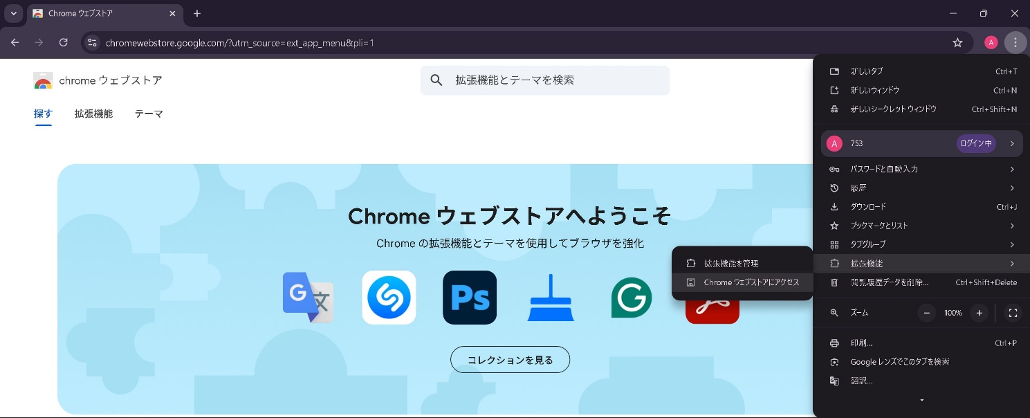 2-1. 拡張機能ページへアクセス