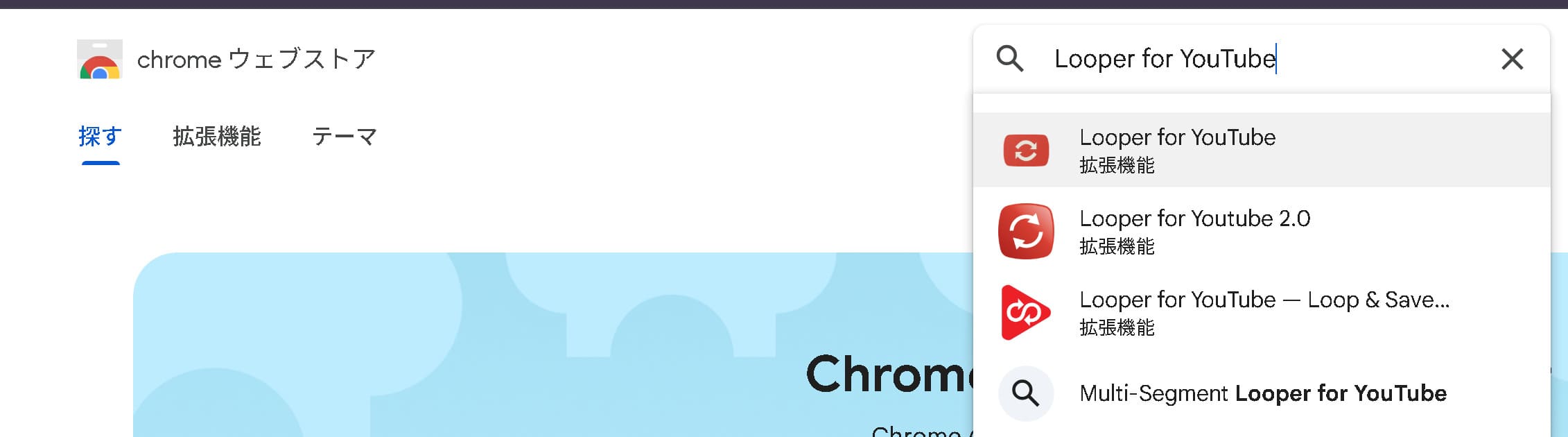 検索窓に 「Looper for Youtube」 と入力して検索します。