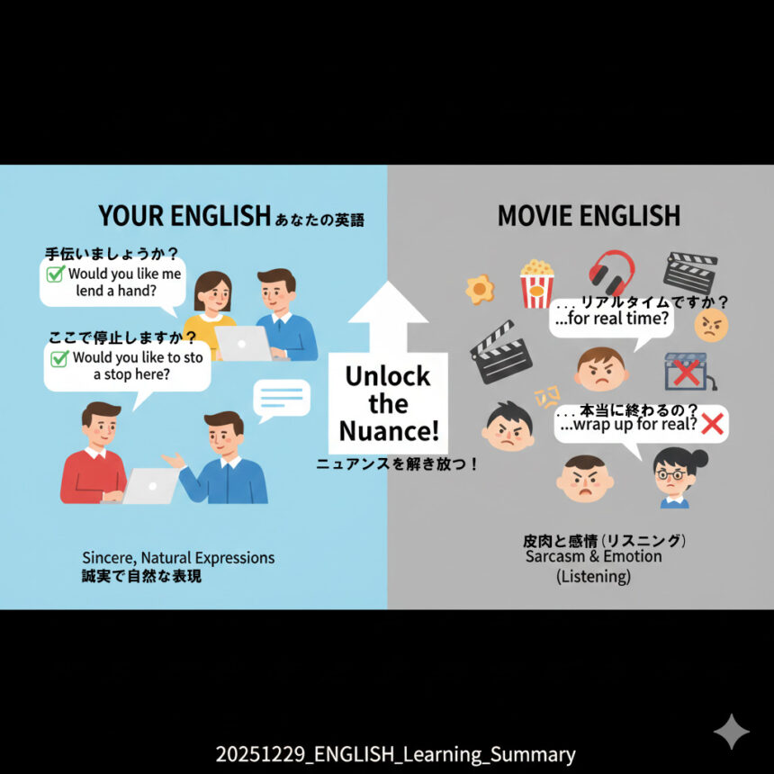 • 「自分ならこう言う」という基準: これがあるからこそ、映画で「自分なら絶対言わない表現」が出たときに、キャラクターの「皮肉」や「怒り」という感情の動きを瞬時に察知できる。