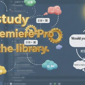 Lesson 01:英語の骨組みを深掘りしてみました1. 英語の『骨組み』と『お肉』I study Premiere Pro at the library.骨組み: 「だれが(主語)+ どうする(…